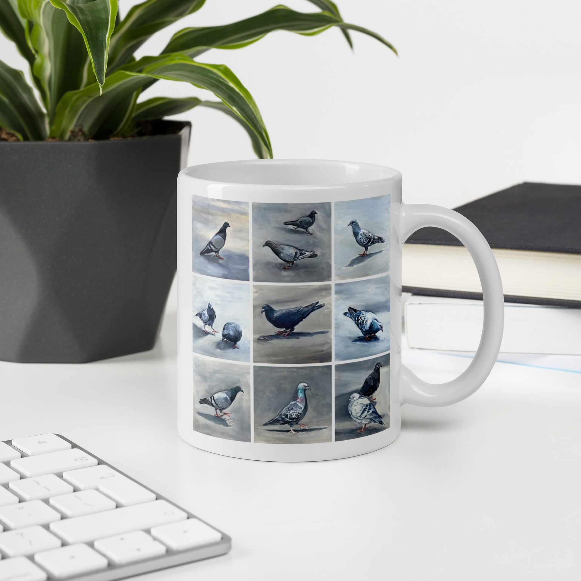 Looking for a fun addition to your caffeinated mornings? This ceramic mug adorned with nine pigeons is sure to put a smile on your face! It’s dishwasher-safe and perfect for everyday use.