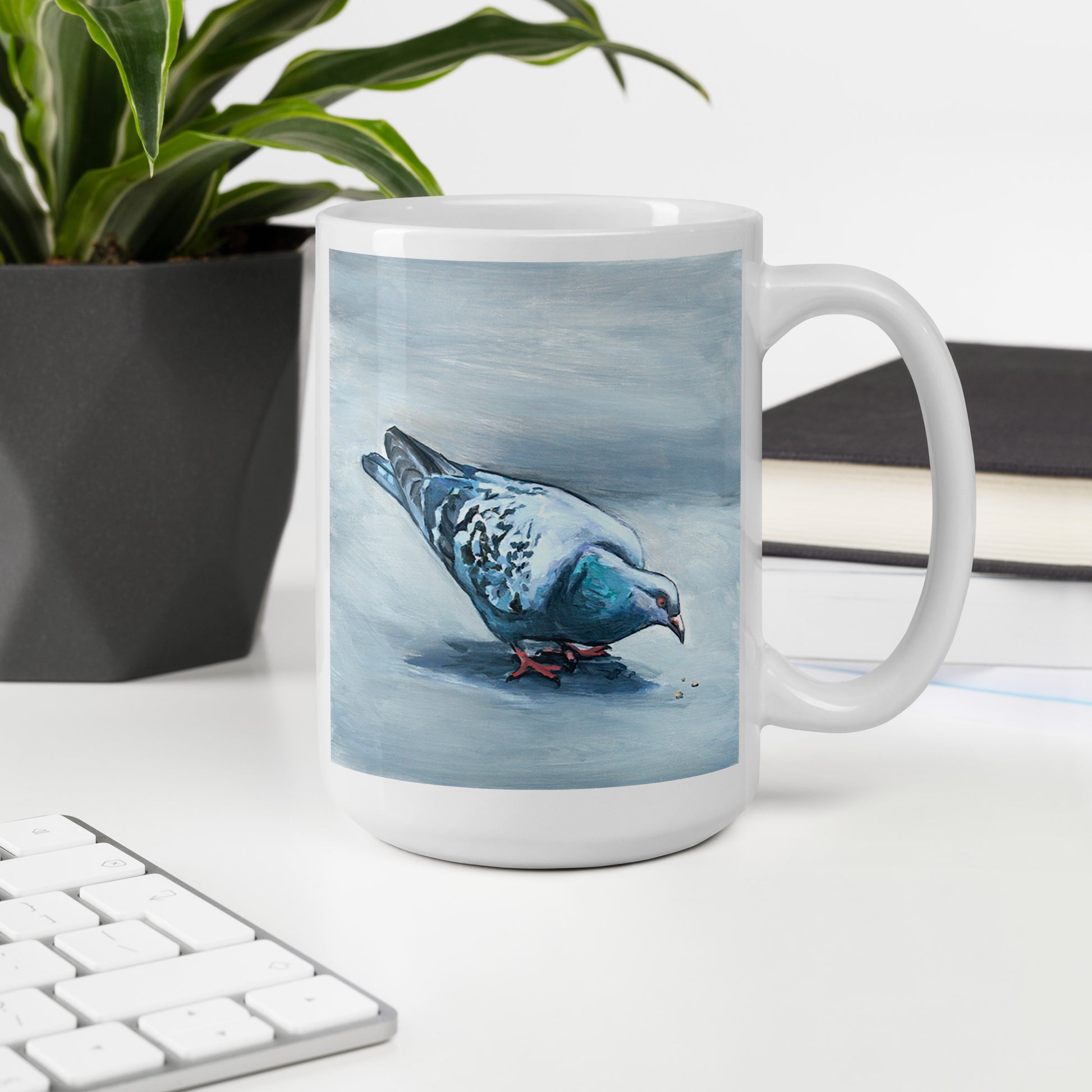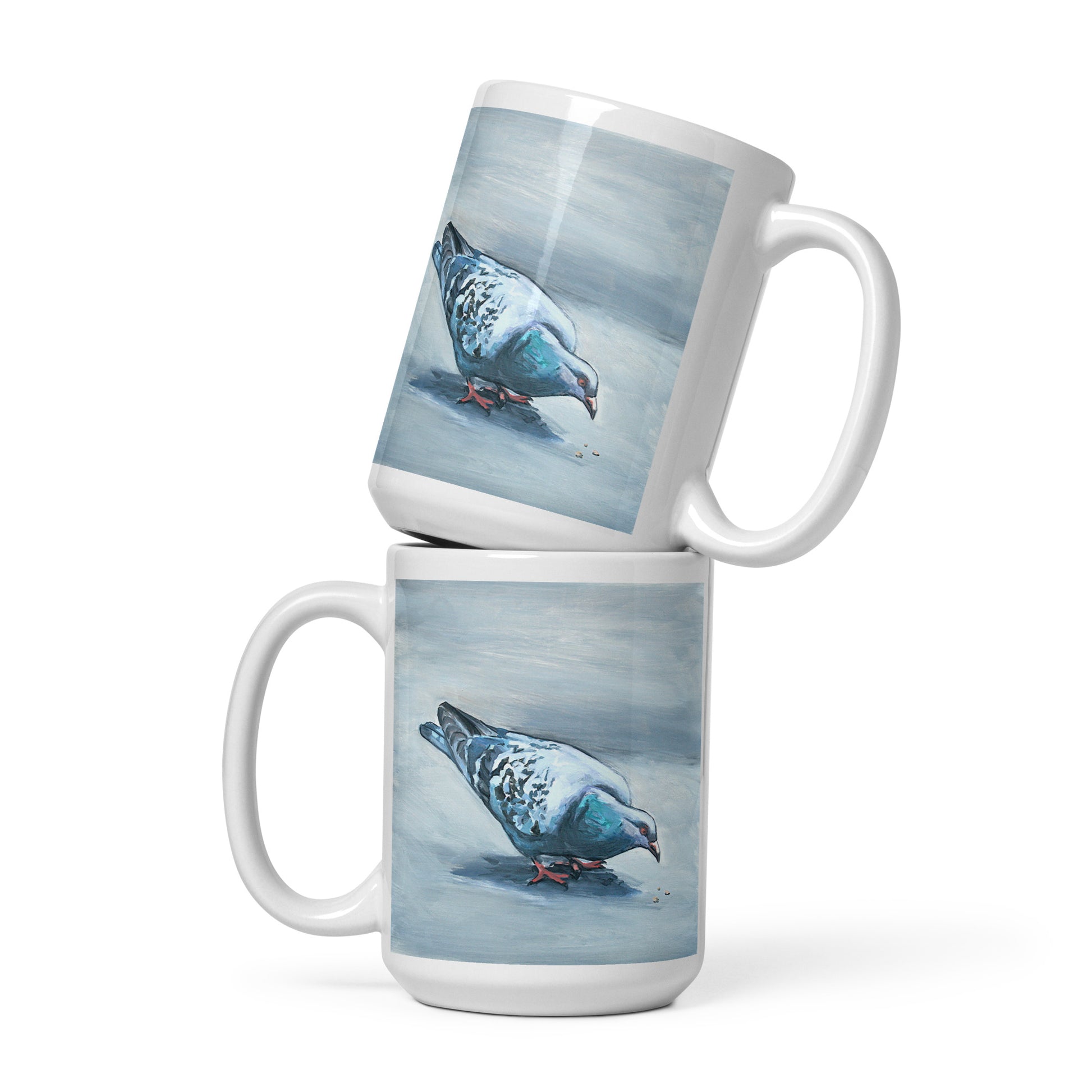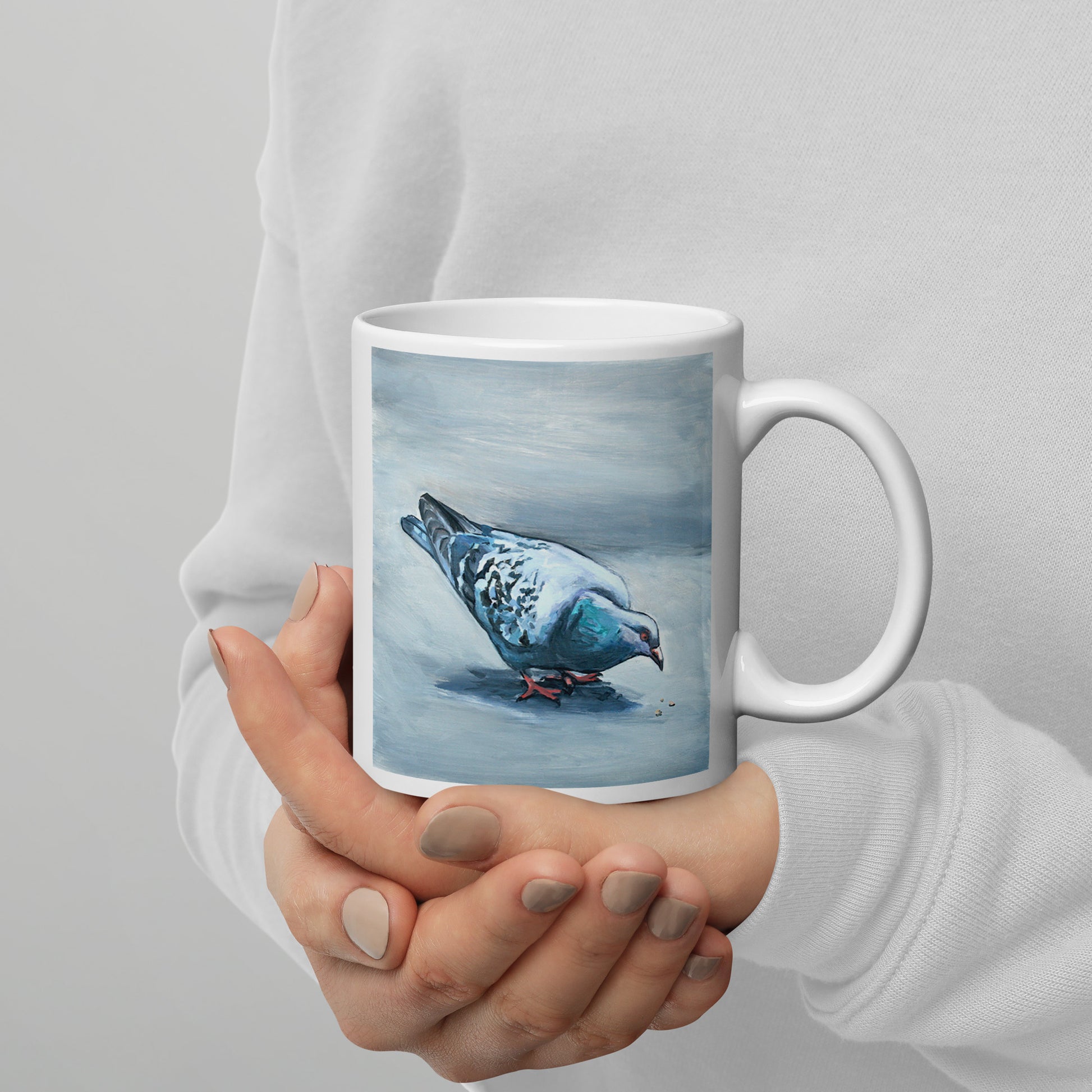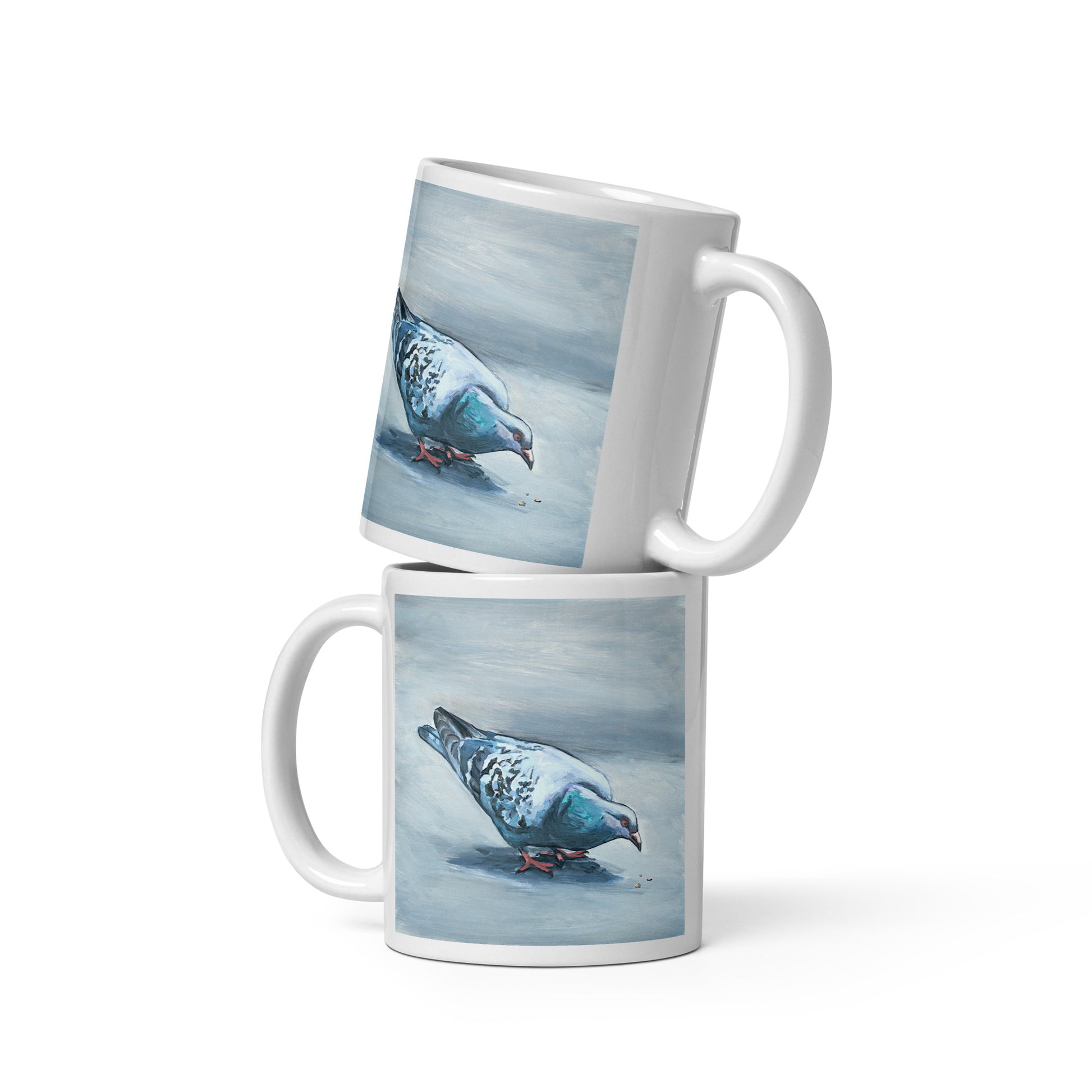 White Glossy Mug - Pigeon Eating